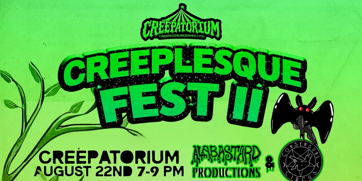 The Creeplesque Burlesque Festival is a one-of-a-kind event produced by ConSensual Circus and Alabastard Productions. It is a celebration of the unconventional and the bizarre in the world of burlesque. Unlike traditional burlesque shows, this festival is dedicated to performers who embrace the creepy, weird, horrifying, and just plain odd. Join us for a mesmerizing experience that defies the norm and gives Denver's most creepy performers a time to shine!